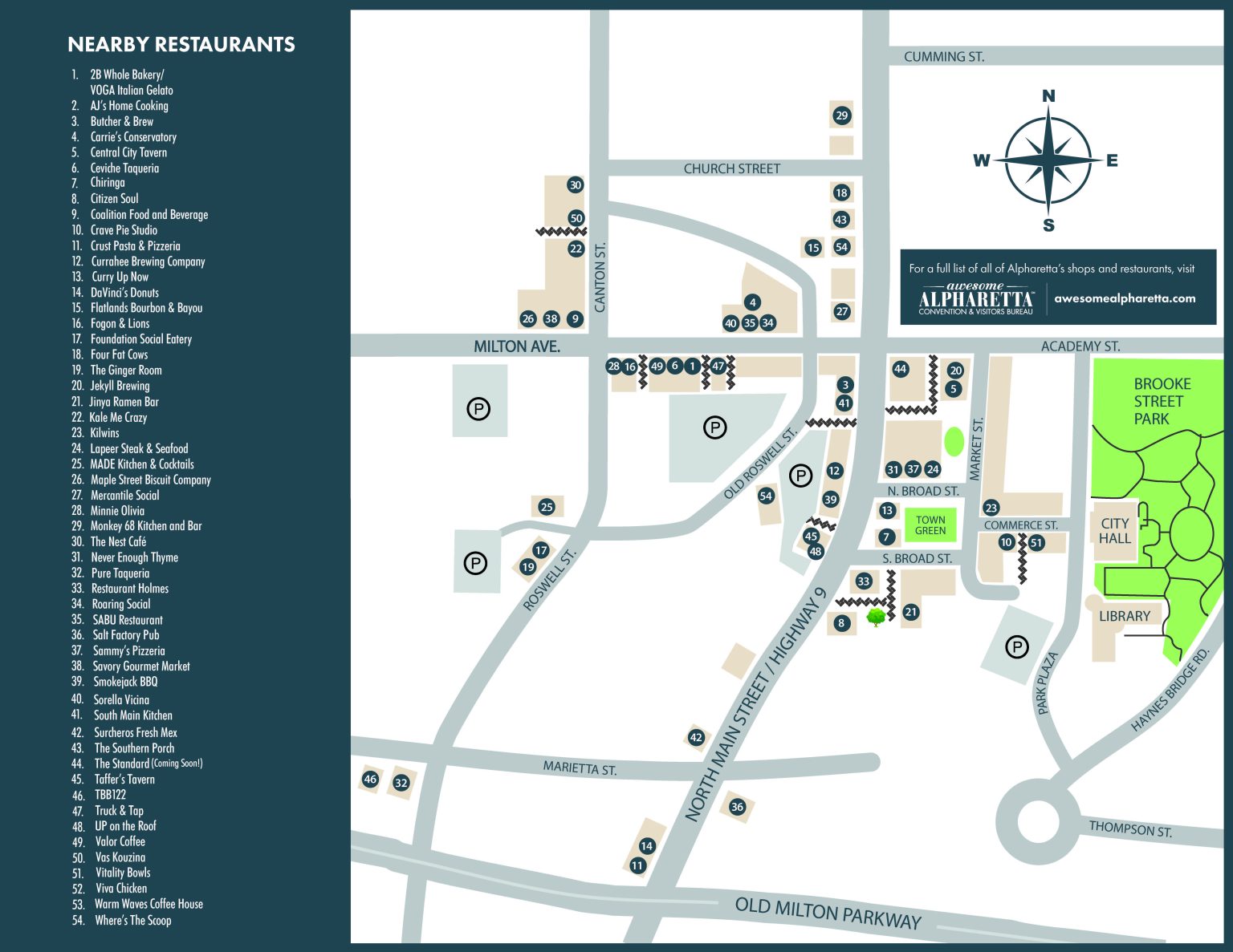 From 400 northbound, take a left off of Exit 9 – Haynes Bridge Road. Parking will be available for attendees at the City Hall parking deck (2 Park Plaza), Roswell Street lot (45 Roswell Street), and the parking deck (90 Milton Avenue) accessible via the Roswell Street lot. General parking information for the City of Alpharetta is listed HERE.